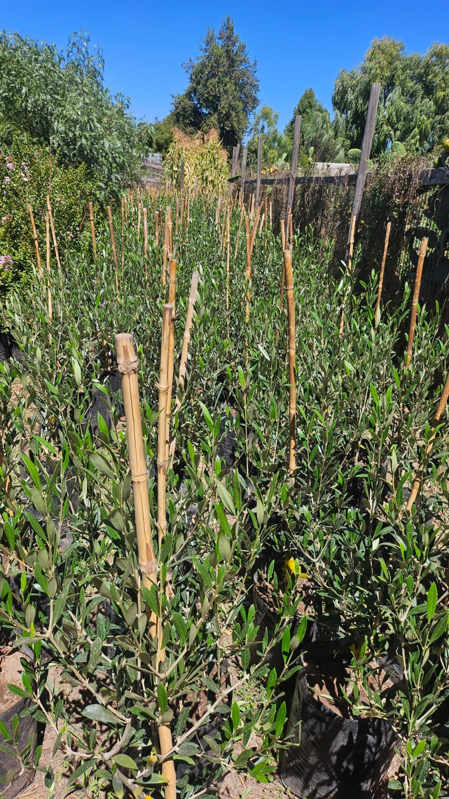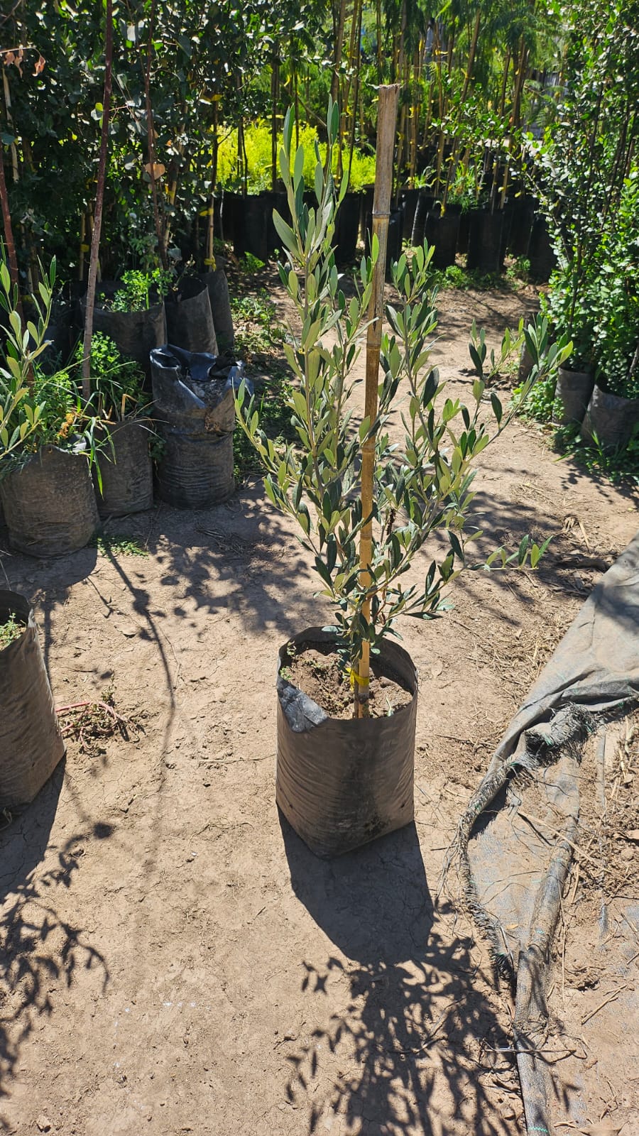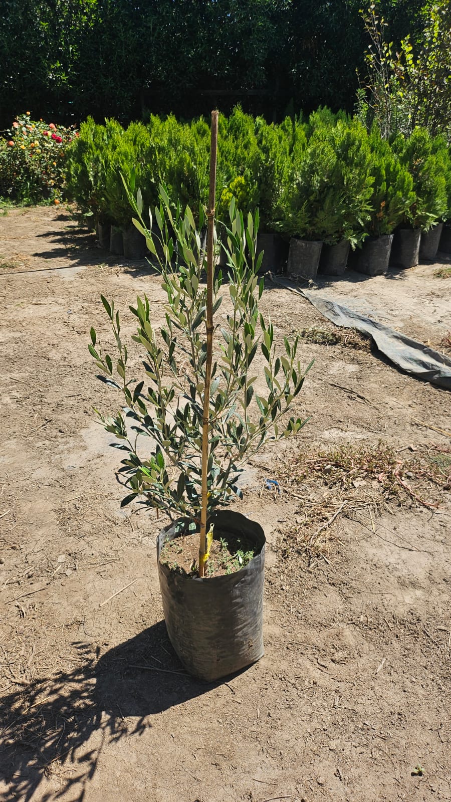 Olivo joven de aproximadamente 90 cm de altura, ideal para jardines, terrazas y proyectos de paisajismo de estilo mediterráneo. Destaca por su follaje verde grisáceo y elegante, muy resistente al sol y a la sequía una vez establecido.